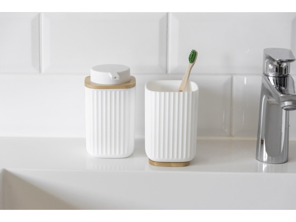 Rotello dávkovač na mýdlo v bílém provedení není jen stylovým doplňkem do vaší koupelny, ale také přispívá k udržitelnosti a snižuje plastový odpad. Tento dávkovač s pumpou je opakovaně dobíjitelný a pojme až 250 ml mýdla, což jej činí ekologickou alternativou k tradičním plastovým dávkovačům z drogerií a supermarketů. Při kompaktním rozměru 8,9 x 12,7 x 7,5 cm se do dávkovače vejde několik mililitrů tekutého mýdla. V koupelně působí Rotello dávkovač na mýdlo skvěle v klasickém bílém provedení a upoutá pozornost svým přírodním bambusovým detailem na víčku. Můžete jej stejně stylově využít i v kuchyni jako dávkovač na nádobí nebo jako elegantní dávkovač dezinfekčního prostředku v jiných místnostech. Pokud preferujete harmonii ve výbavě, můžete tento dávkovač na mýdlo doplnit o další doplňky ze série Rotello, jako jsou držák na ubrousky, kelímek na zubní kartáčky, držák na mýdlo nebo kartáč na WC. A pro ty, kteří upřednostňují tmavší doplňky, máme dobrou zprávu: Série koupelnových doplňků Rotello je také k dispozici v černém provedení!Doplňkové parametry