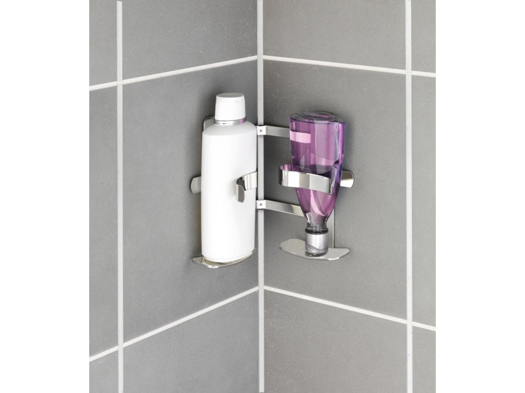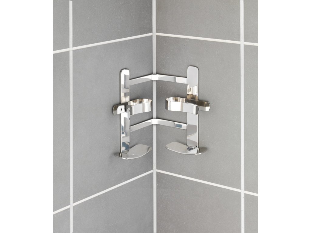BEZ VRTÁNÍ TurboLoc CLIPPSY - Rohový držák na šampóny, kovově lesklý